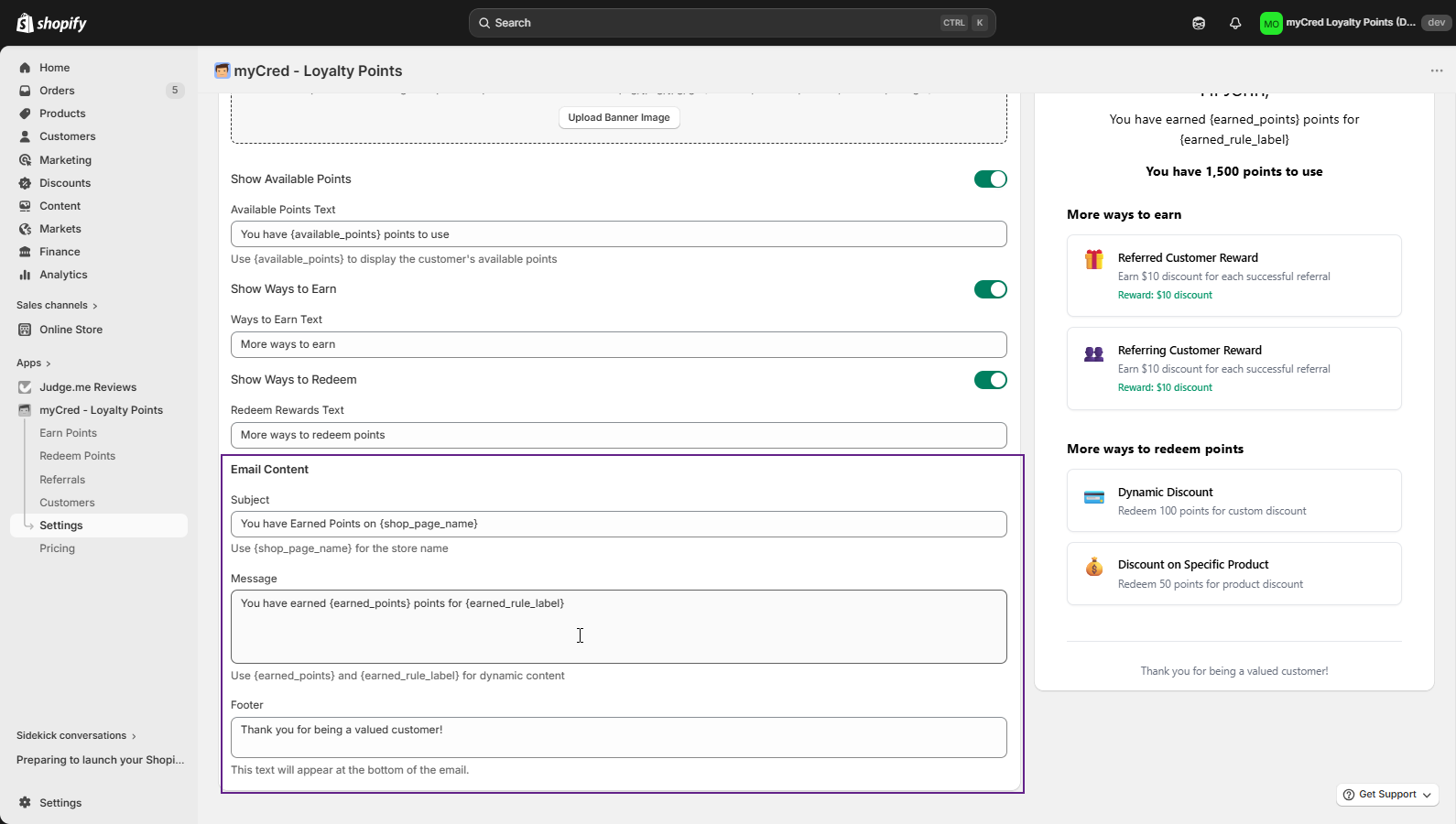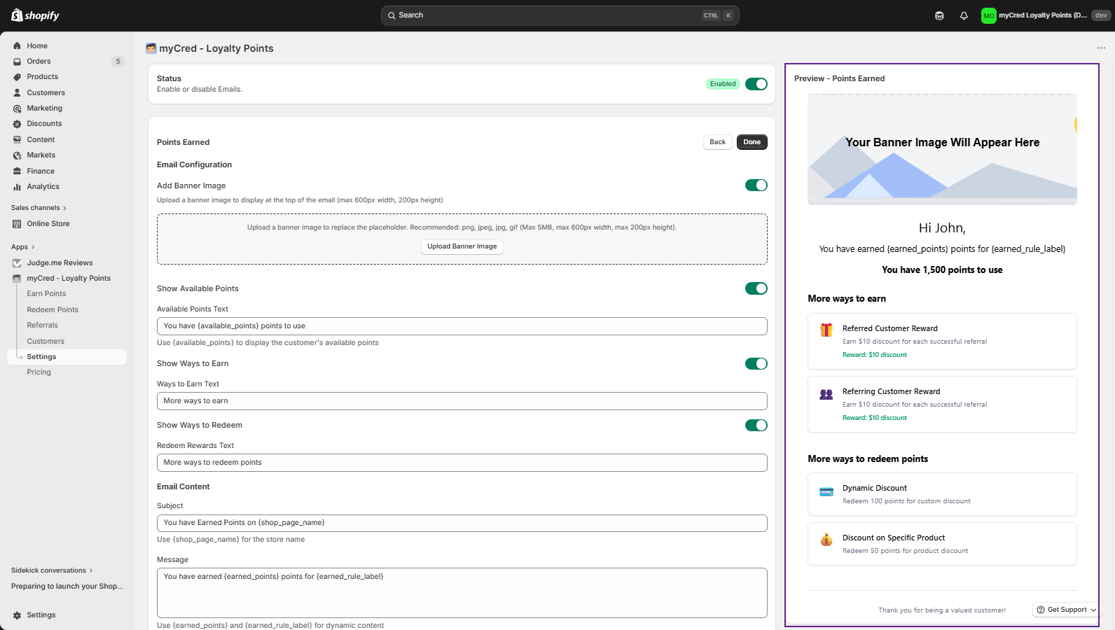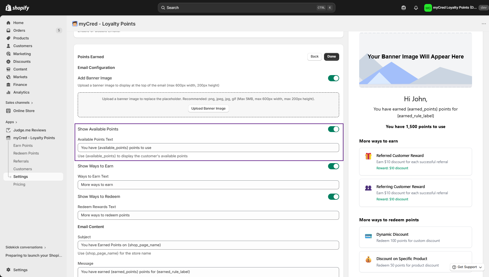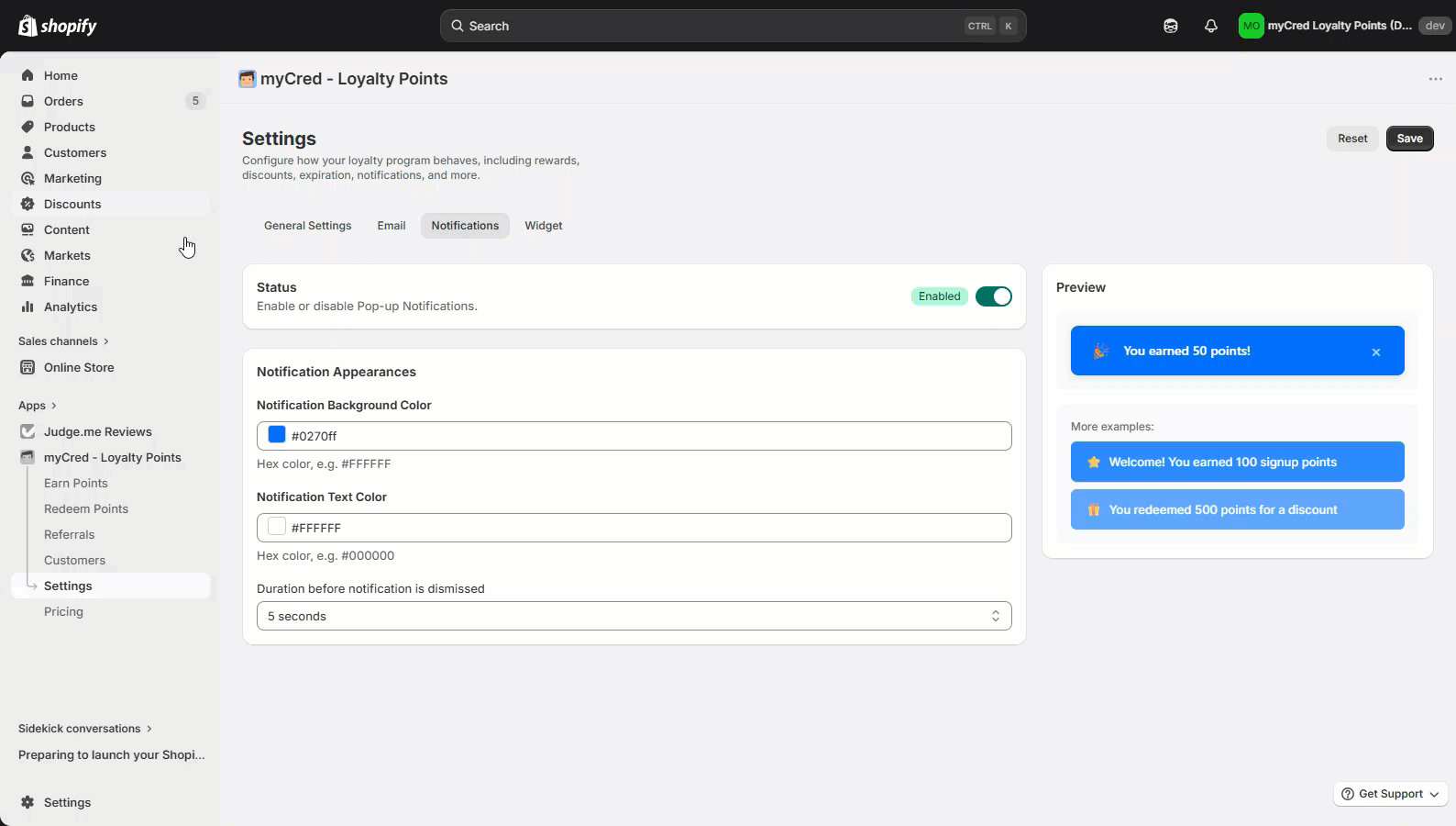 Control popup notifications that appear on the storefront when customers earn or redeem points.